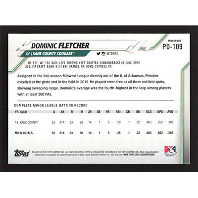This is a 2020 Topps Pro Debut Dominic Fletcher baseball card. The card is #PD-109 and pictures show condition.
