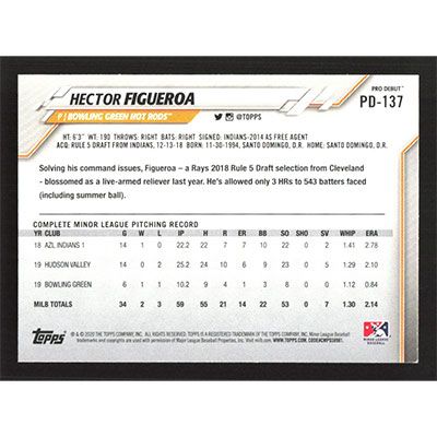 This is a 2020 Topps Pro Debut Hector Figueroa baseball card. The card is #PD-137 and pictures show condition.