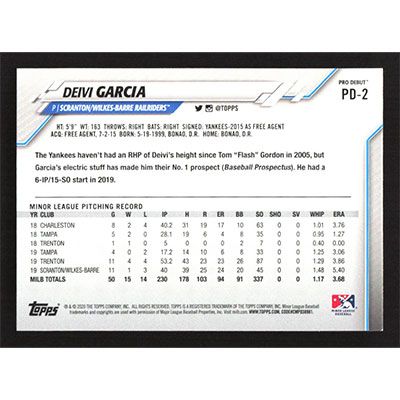This is a 2020 Topps Pro Debut Deivi Garcia baseball card. The card is #PD-2 and pictures show condition.