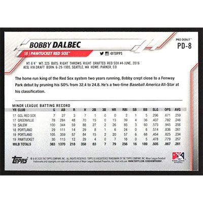This is a 2020 Topps Pro Debut Bobby Dalbec baseball card. The card is #PD-8 and pictures show condition.