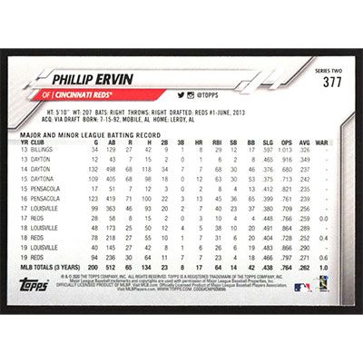 This is a 2020 Topps Rainbow Foil Phillip Ervin baseball card. The card is #377 and pictures show condition.