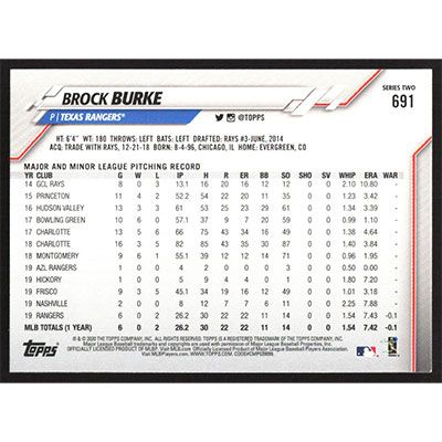 This is a 2020 Topps Rainbow Foil Brock Burke baseball card. The card is #691 and pictures show condition.