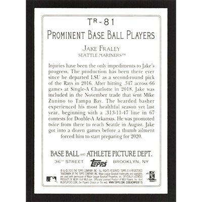 This is a 2020 Topps Turkey Red Series 2 Jake Fraley baseball card. The card is #TR-81 and pictures show condition. Team(s): Seattle Mariners Rookie Card (RC)