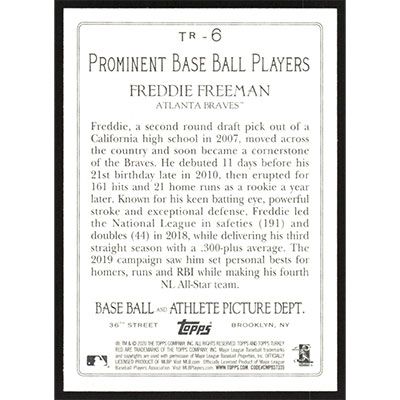 This is a 2020 Topps Turkey Red Freddie Freeman baseball card. The card is #TR-6 and pictures show condition.