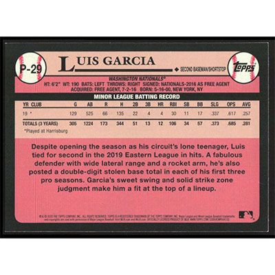 This is a 2020 Topps Update Prospects Luis Garcia baseball card. The card is #P-29 and pictures show condition.