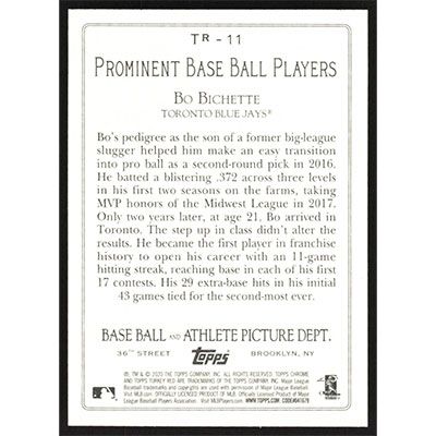 This is a 2020 Topps Update Turkey Red Bo Bichette baseball card. The card is #TR-11 and pictures show condition. Team(s): Toronto Blue Jays Rookie Card (RC)