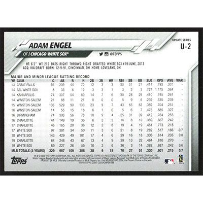 This is a 2020 Topps Update Adam Engel baseball card. The card is #U-2 and pictures show condition.