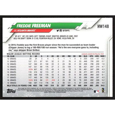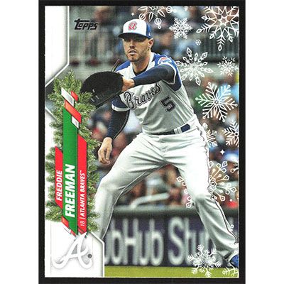 This is a 2020 Topps Wal-Mart Holiday Freddie Freeman baseball card. The card is #HW148 and pictures show condition.