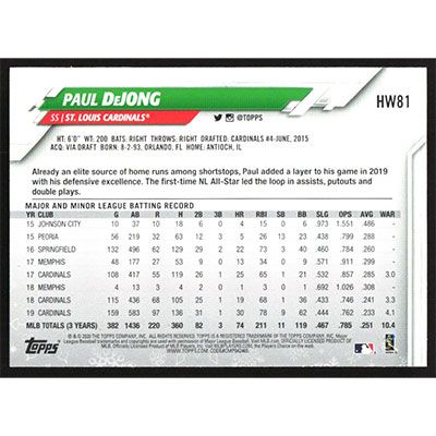 This is a 2020 Topps Wal-Mart Holiday Paul DeJong baseball card. The card is #HW81 and pictures show condition.