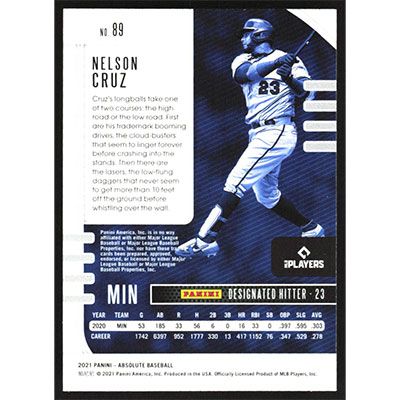 This is a 2021 Absolute Nelson Cruz baseball card. The card is #89 and pictures show condition.