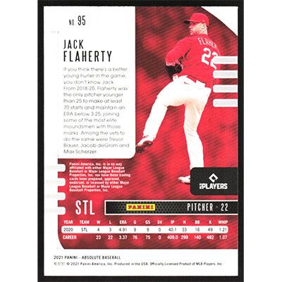 This is a 2021 Absolute Jack Flaherty baseball card. The card is #95 and pictures show condition.