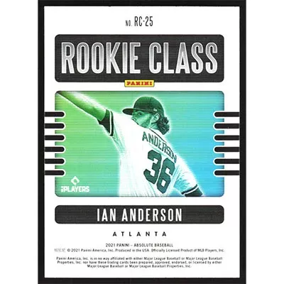 This is a 2021 Absolute Rookie Class Ian Anderson baseball card. The card is #RC-25 and pictures show condition.