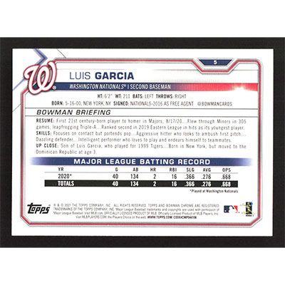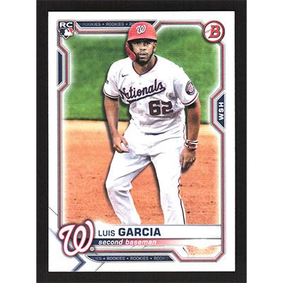 This is a 2021 Bowman Luis Garcia baseball card. The card is #5 and pictures show condition.