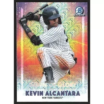 This is a 2021 Bowman Chrome Mega Box Dawn of Glory Refractors Kevin Alcantara baseball card. The card is #DG-7 and pictures show condition. Team(s): New York Yankees