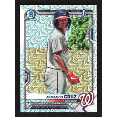 This is a 2021 Bowman Chrome Mega Box Prospects Refractors Armando Cruz baseball card. The card is #BCP-247 and pictures show condition. Team(s): Washington Nationals