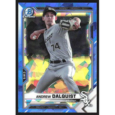 This is a 2021 Bowman Chrome Sapphire Prospects Andrew Dalquist baseball card. The card is #BCP-64 and pictures show condition. Team(s): Chicago White Sox