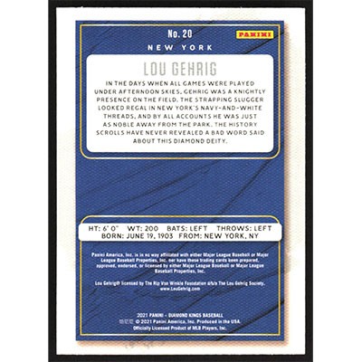 This is a 2021 Diamond Kings Lou Gehrig baseball card. The card is #20 and pictures show condition.
