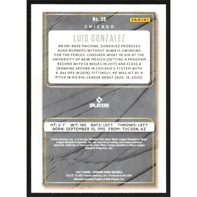 This is a 2021 Diamond Kings Luis Gonzalez baseball card. The card is #39 and pictures show condition.