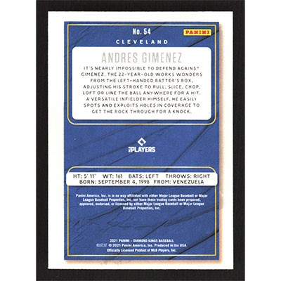 This is a 2021 Diamond Kings Andres Gimenez baseball card. The card is #54 and pictures show condition.