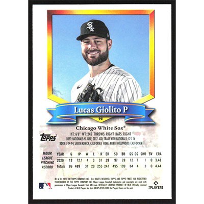 This is a 2021 Finest Flashbacks Lucas Giolito baseball card. The card is #95 and pictures show condition.