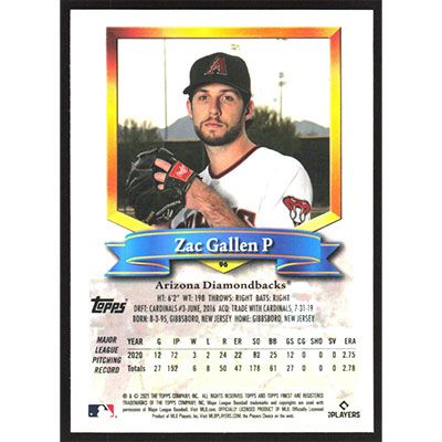 This is a 2021 Finest Flashbacks Zac Gallen baseball card. The card is #96 and pictures show condition.