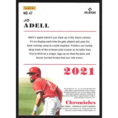 This is a 2021 Panini Chronicles Jo Adell baseball card. The card is #47 and pictures show condition.