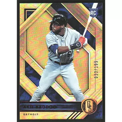 This is a 2021 Panini Chronicles Gold Standard Red Akil Baddoo baseball card. The card is #3 and pictures show condition. This card is limited; #'d 033/199.
