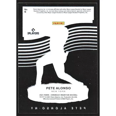 This is a 2021 Panini Chronicles Magnitude Pete Alonso baseball card. The card is #6 and pictures show condition.