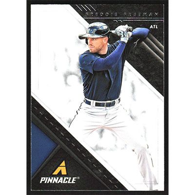 This is a 2021 Panini Chronicles Pinnacle Freddie Freeman baseball card. The card is #9 and pictures show condition.