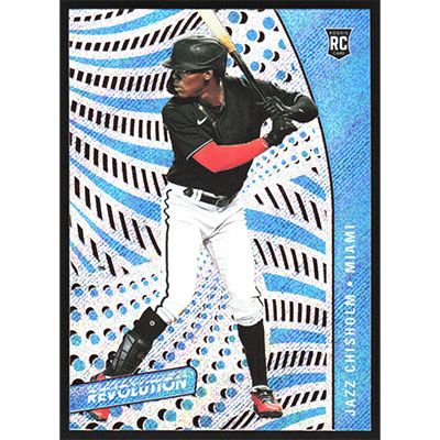 This is a 2021 Panini Chronicles Revolution Jazz Chisholm baseball card. The card is #34 and pictures show condition. Team(s): Miami Marlins Rookie Card (RC)