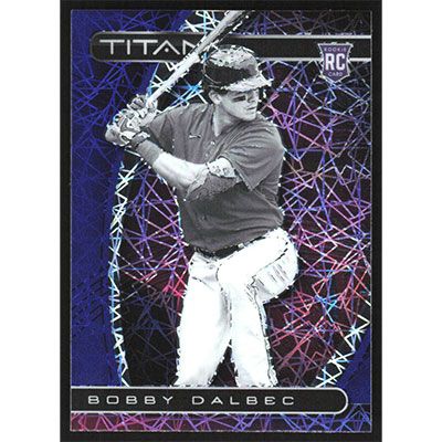 This is a 2021 Panini Chronicles Titan Blue Velocity Bobby Dalbec baseball card. The card is #10 and pictures show condition. Team(s): Boston Red Sox Rookie Card (RC)