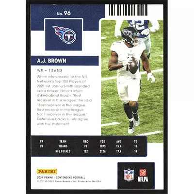 This is a 2021 Panini Contenders A.J. Brown football card. The card is #96 and pictures show condition.