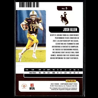 This is a 2021 Panini Contenders Draft Picks Josh Allen football card. The card is #5 and is in NM-MT condition.