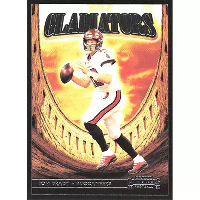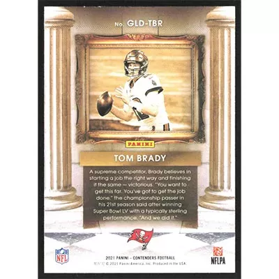 This is a 2021 Panini Contenders Gladiators Tom Brady football card. The card is #GLD-TBR and pictures show condition.