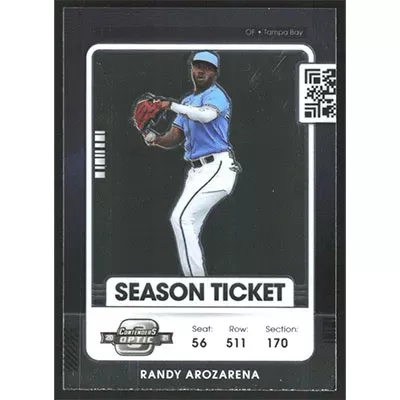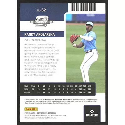This is a 2021 Panini Contenders Optic Randy Arozarena baseball card. The card is #32 and pictures show condition.