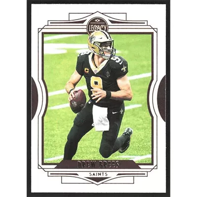 This is a 2021 Panini Legacy Drew Brees football card. The card is #34 and pictures show condition.