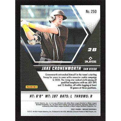 This is a 2021 Panini Mosaic Jake Cronenworth baseball card. The card is #250 and pictures show condition.