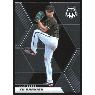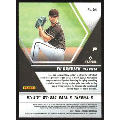 This is a 2021 Panini Mosaic Yu Darvish baseball card. The card is #54 and pictures show condition.