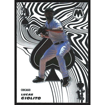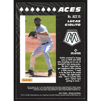 This is a 2021 Panini Mosaic Aces Lucas Giolito baseball card. The card is #ACE15 and pictures show condition.