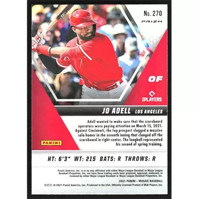 This is a 2021 Panini Mosaic Mosaics Jo Adell baseball card. The card is #270 and pictures show condition. Team(s): Los Angeles Angels Rookie Card (RC)