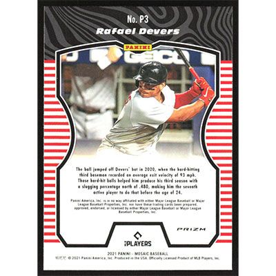This is a 2021 Panini Mosaic Producers Mosaic Rafael Devers baseball card. The card is #P3 and pictures show condition.