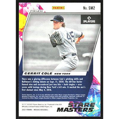 This is a 2021 Panini Mosaic Stare Masters Silver Gerrit Cole baseball card. The card is #SM2 and pictures show condition.