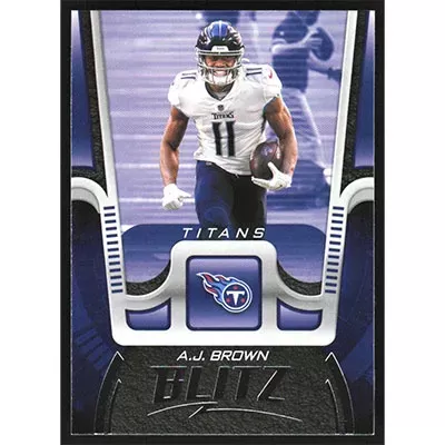 This is a 2021 Panini Playbook BLITZ A.J. Brown football card. The card is #BTZ-AJB and pictures show condition.