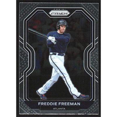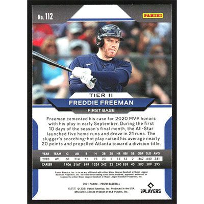 This is a 2021 Panini Prizm Freddie Freeman baseball card. The card is #112 and pictures show condition.