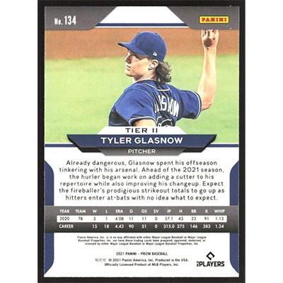 This is a 2021 Panini Prizm Tyler Glasnow baseball card. The card is #134 and pictures show condition.