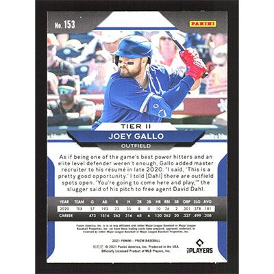 This is a 2021 Panini Prizm Joey Gallo baseball card. The card is #153 and pictures show condition.