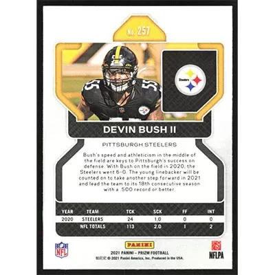 This is a 2021 Panini Prizm Devin Bush II football card. The card is #257 and pictures show condition.