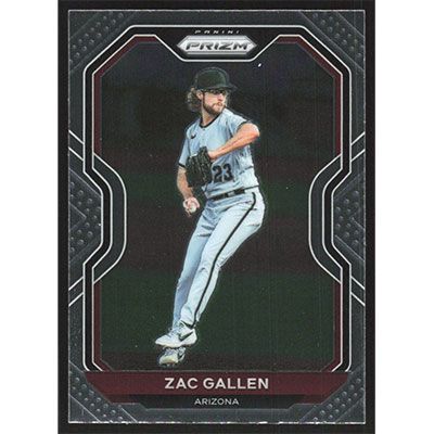 This is a 2021 Panini Prizm Zac Gallen baseball card. The card is #65 and pictures show condition.