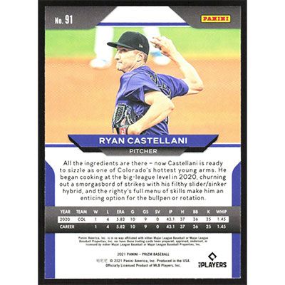 This is a 2021 Panini Prizm Ryan Castellani baseball card. The card is #91 and pictures show condition.