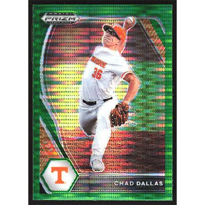 This is a 2021 Panini Prizm Draft Picks Green Pulsar Chad Dallas baseball card. The card is #PDP121 and pictures show condition. Team(s): Tennessee Volunteers